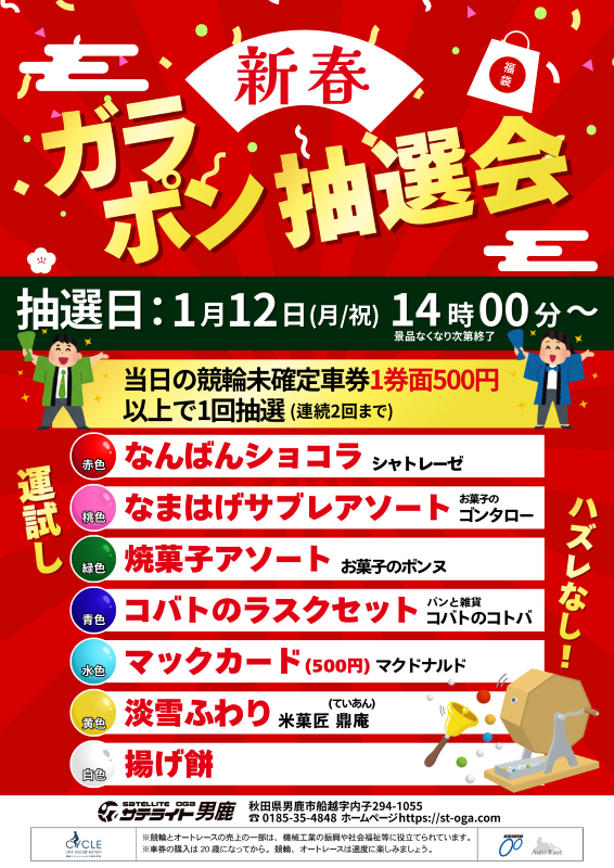 サテライト男鹿にて 「新春ガラポン抽選会」 を開催します。