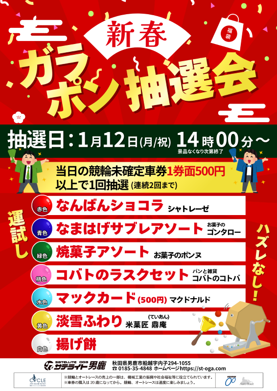 サテライト男鹿にて 「新春ガラポン抽選会」 を開催します。